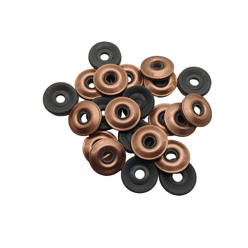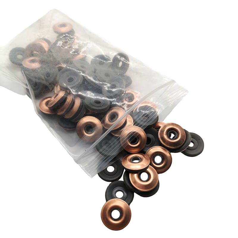 แหวนรองกาวร้อนละลายทองแดงของเราทำจากทองแดงและยาง โดยมีเส้นผ่านศูนย์กลางภายใน 4 มม. และเส้นผ่านศูนย์กลางภายนอกมีให้เลือกทั้ง 15 มม. หรือ 19 มม. ทำหน้าที่เป็นส่วนประกอบการปิดผนึกที่ใช้กันทั่วไป เราขัดพื้นผิวเพื่อขจัดชั้นออกซิเดชั่นก่อนที่จะทาการเคลือบกาวร้อนละลาย ผลิตภัณฑ์ของเรามีการปิดผนึกป้องกันการรั่ว ทนต่ออุณหภูมิและการกัดกร่อนสูงและทำงานได้อย่างน่าเชื่อถือในสภาพแวดล้อมที่รุนแรง นอกจากนี้ แหวนรองกาวร้อนละลายทองแดงยังมีการนำไฟฟ้าและความร้อนที่ดีเยี่ยม และติดตั้งง่าย แหวนรองกาวร้อนละลายทองแดงถูกนำมาใช้กันอย่างแพร่หลายในการผลิตยานยนต์ การผลิตกระแสไฟฟ้า และอุปกรณ์อิเล็กทรอนิกส์ โดยปกติจะใช้สำหรับการปิดผนึก การเชื่อมต่อ และการป้องกันฝุ่นและความชื้น
