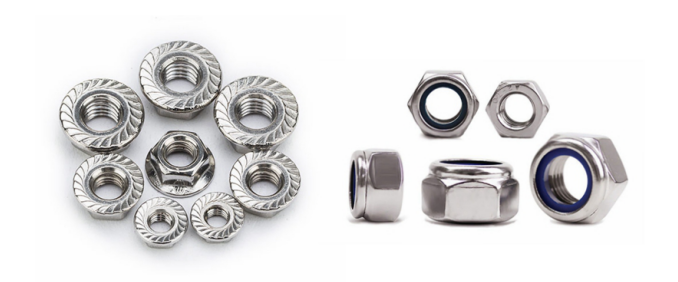 2. น็อตล็อคไนลอน: น็อตเหล่านี้มีวงแหวนไนลอนอยู่ตรงกลาง ซึ่งยังช่วยล็อคและป้องกันการคลายตัวอีกด้วย