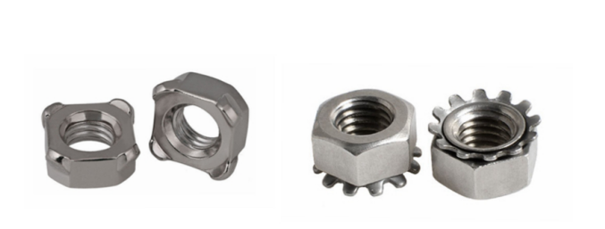 3. ถั่วเชื่อม: น็อตเชื่อม แบ่งเป็นแบบสี่เหลี่ยมและหกเหลี่ยม น็อตเหล่านี้มีจุดเชื่อมหลายจุดที่ด้านล่าง หลังการติดตั้ง พวกเขาจะเชื่อมเข้าที่เพื่อให้ยึดได้แน่นหนามาก